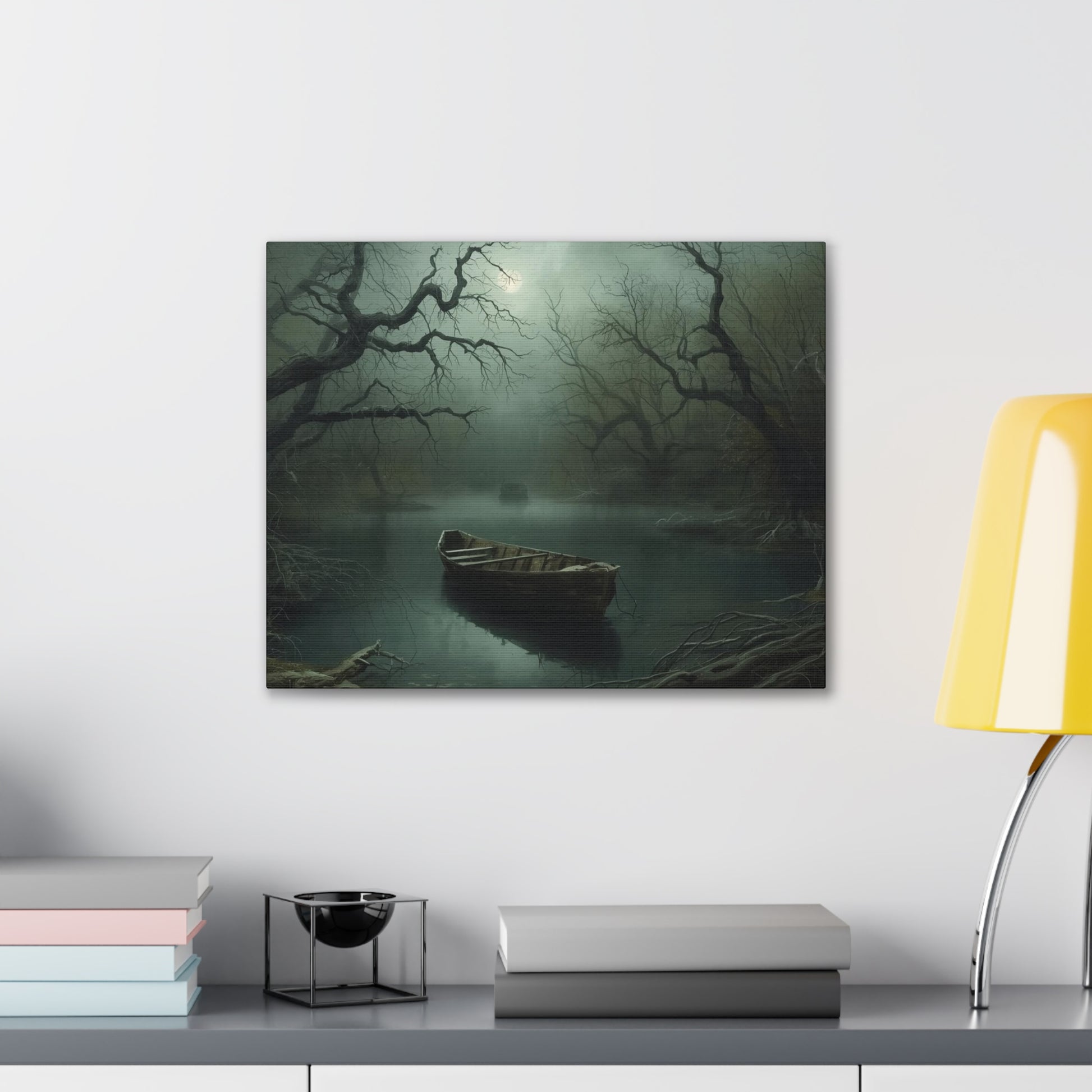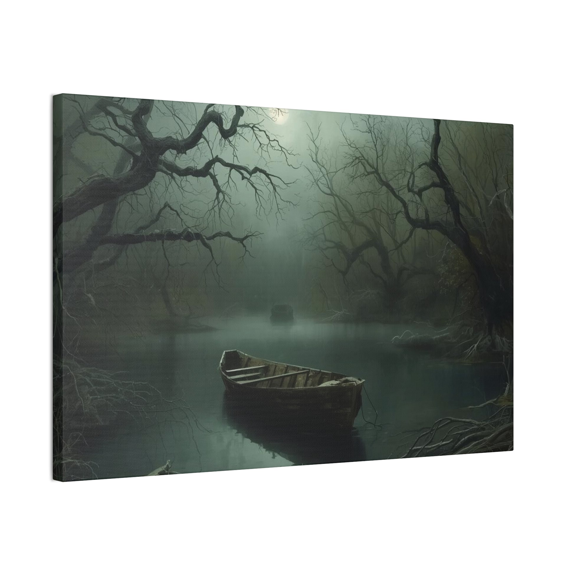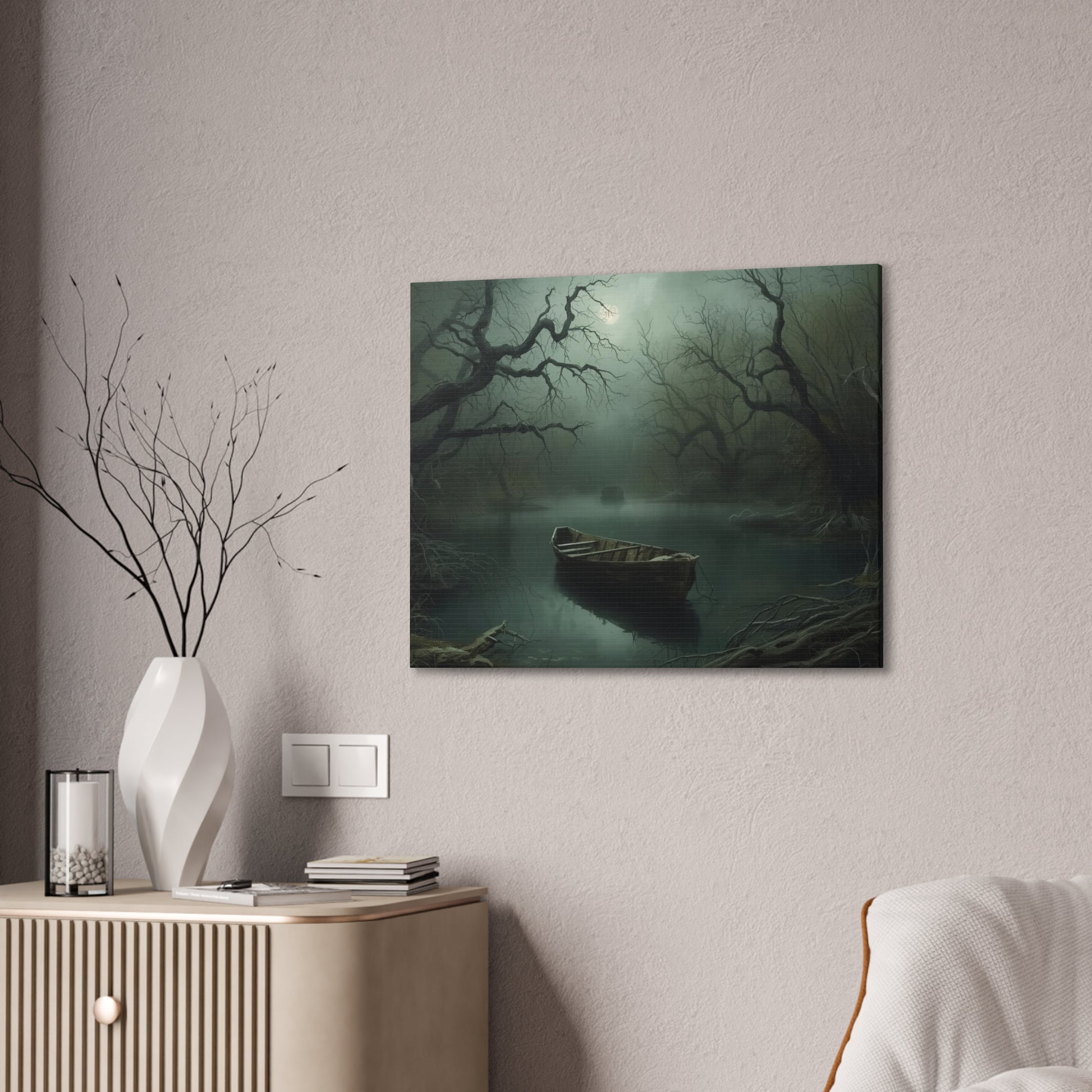 This eerie river scene canvas brings a mysterious and enchanting vibe to any room. Perfect for those who appreciate unique and captivating artwork, this canvas is relevant for Halloween decor, gothic enthusiasts, and nature lovers.