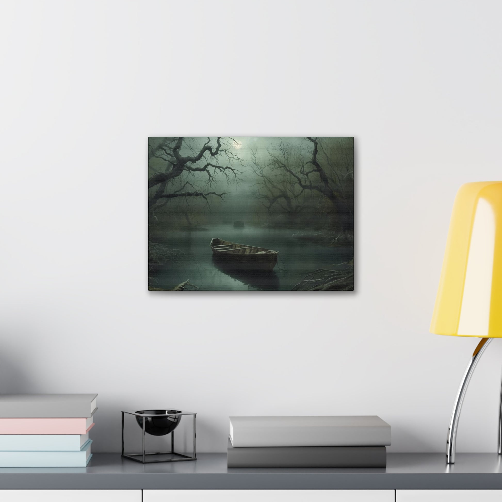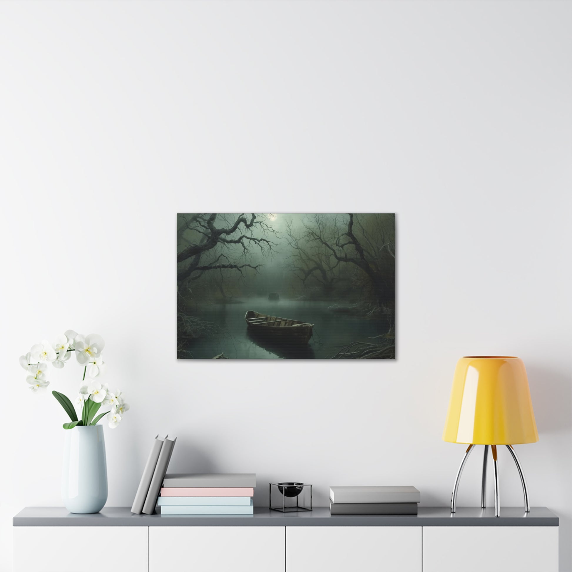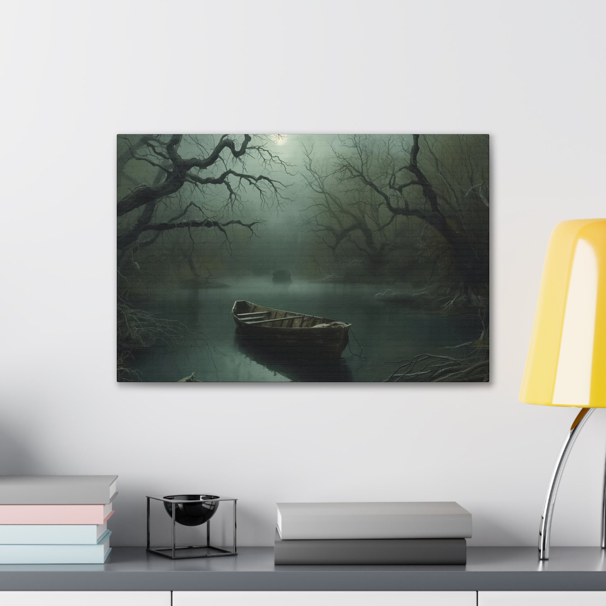 This eerie river scene canvas brings a mysterious and enchanting vibe to any room. Perfect for those who appreciate unique and captivating artwork, this canvas is relevant for Halloween decor, gothic enthusiasts, and nature lovers.