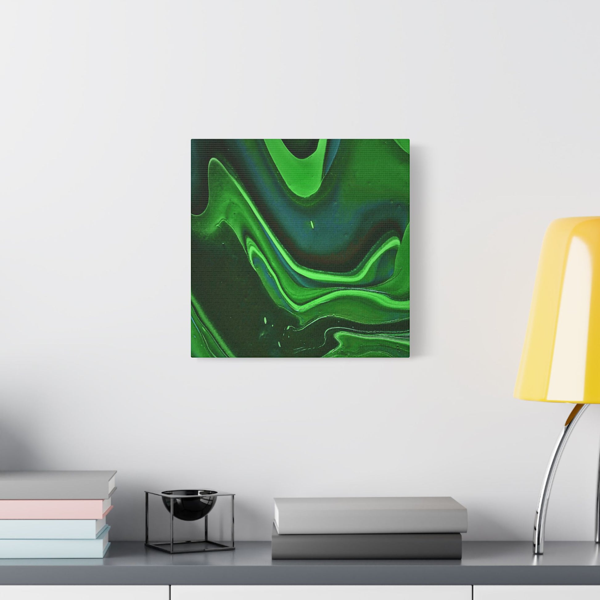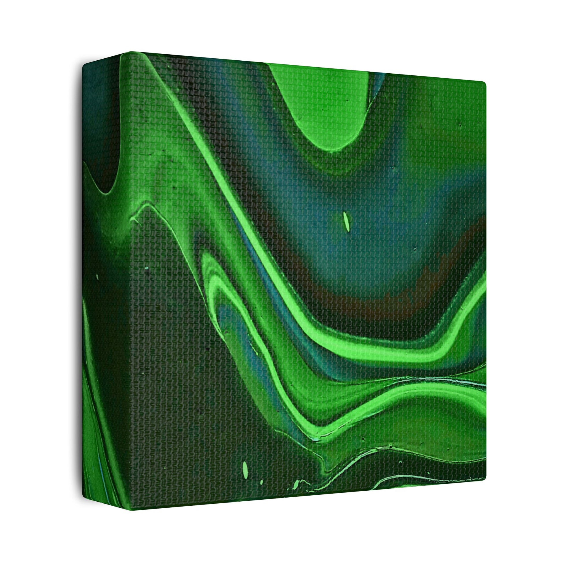 Hand Painted Abstract Green Fluid Art Satin Stretched Canvas Wall Art Print