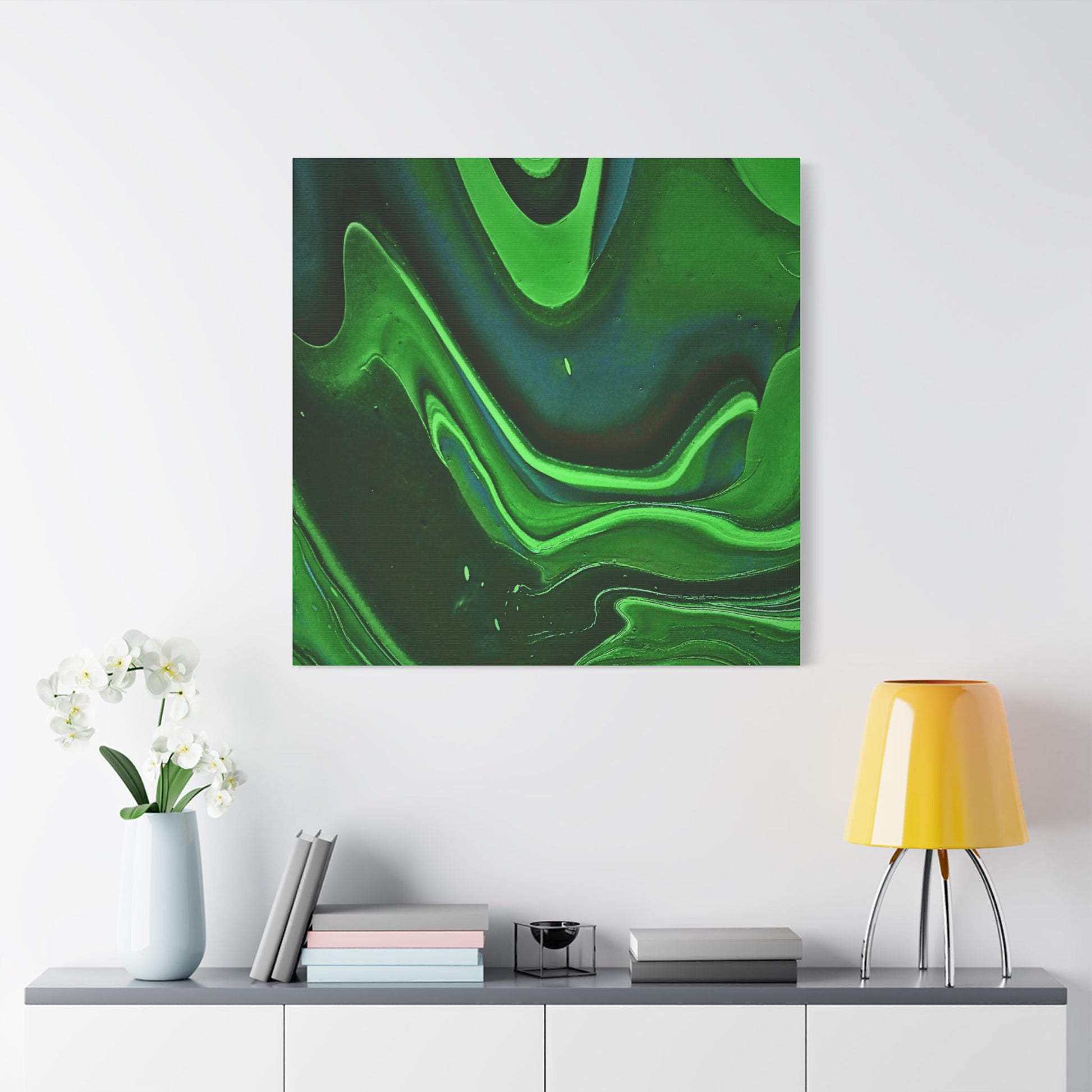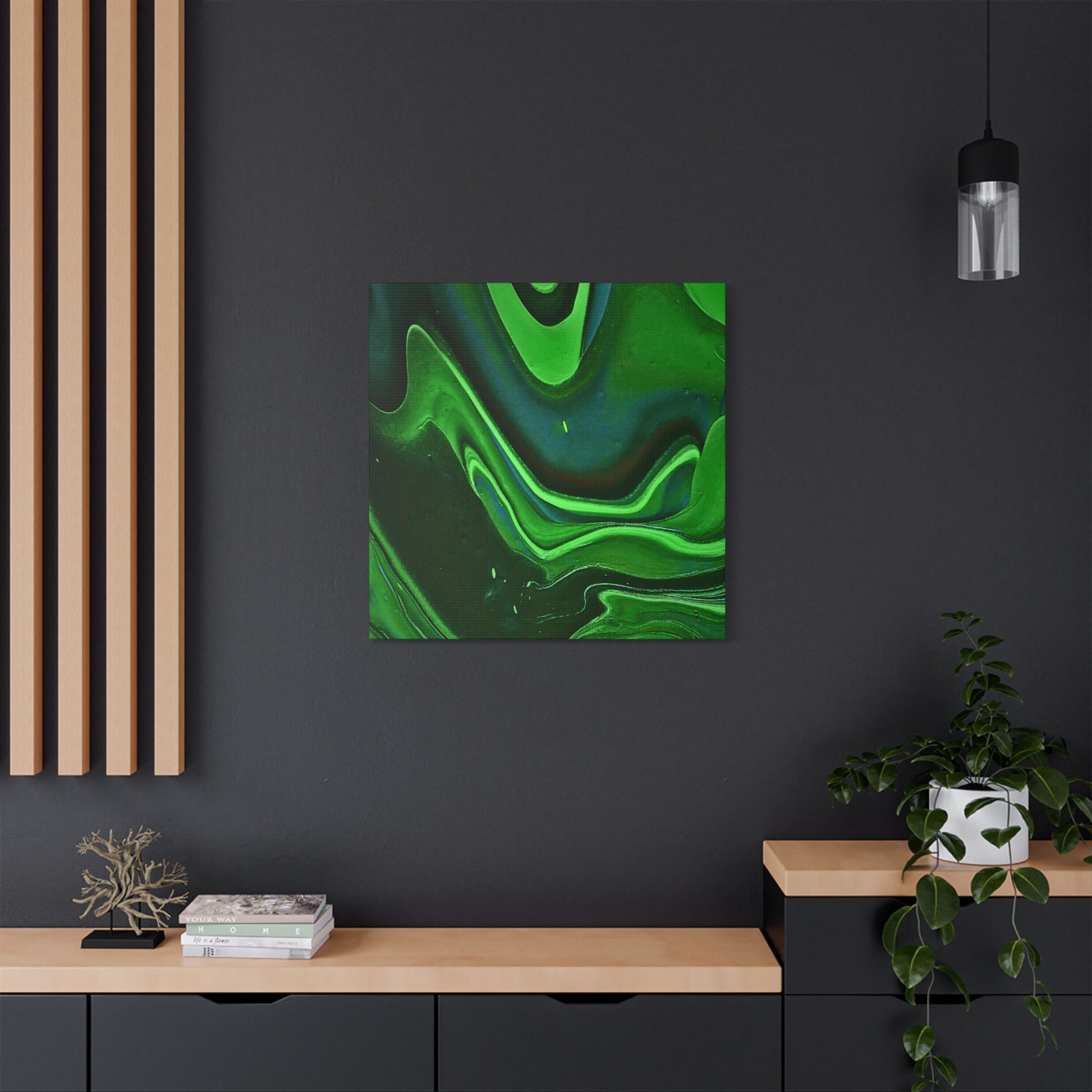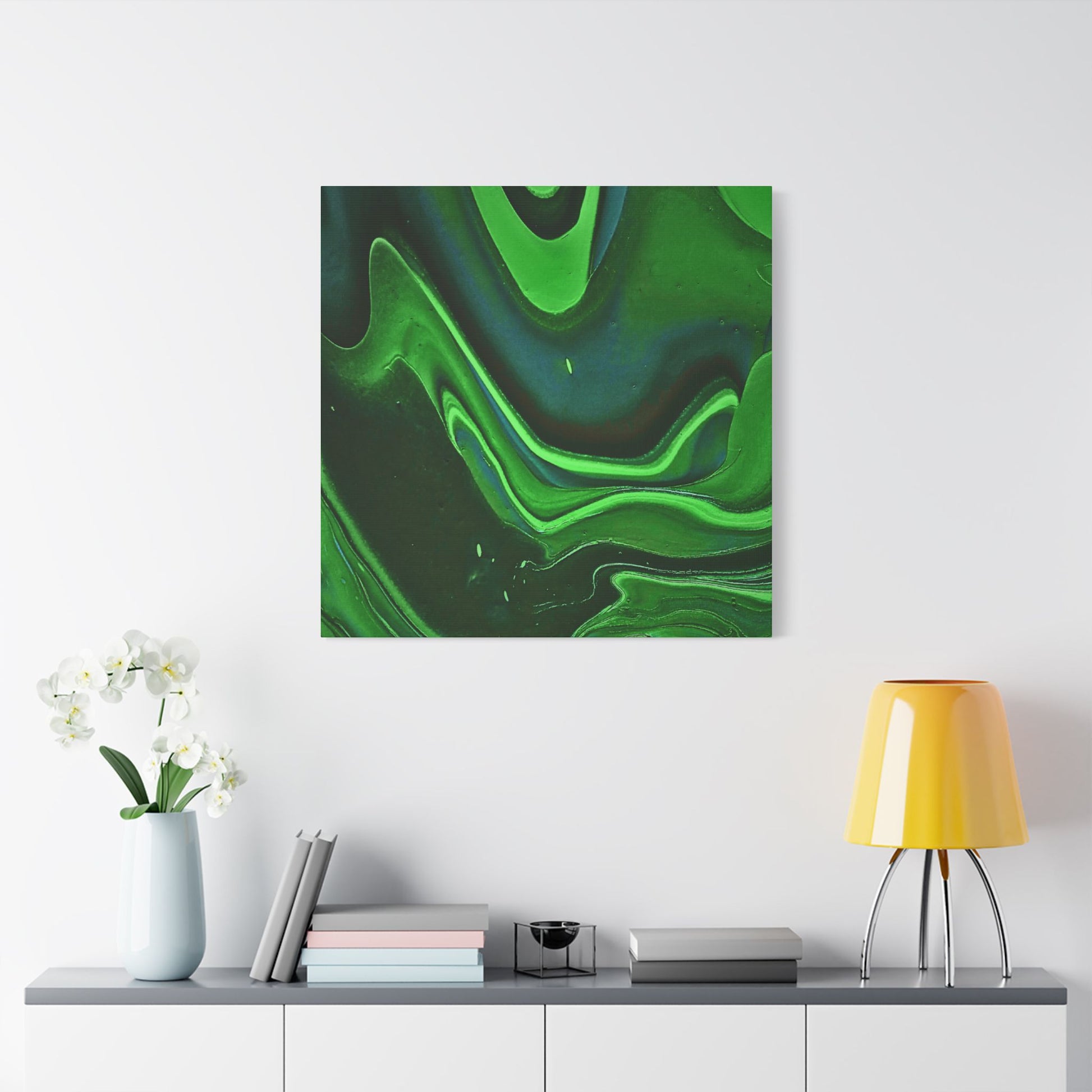 A satin-finish stretched canvas that brings bold, jewel-toned greens to life. The silky sheen of the 100% polyester surface softens the abstract swirls while keeping color contrast sharp and luminous. Built on a solid wooden frame with metal mounts on the back, it arrives ready to hang and sit confidently on any indoor wall — from a cozy reading nook to a bright creative studio. The vivid, REACH-certified inks and advanced printing promise colors that hold their brilliance for years, giving this piece the quiet assurance of something crafted to last and be lived with.