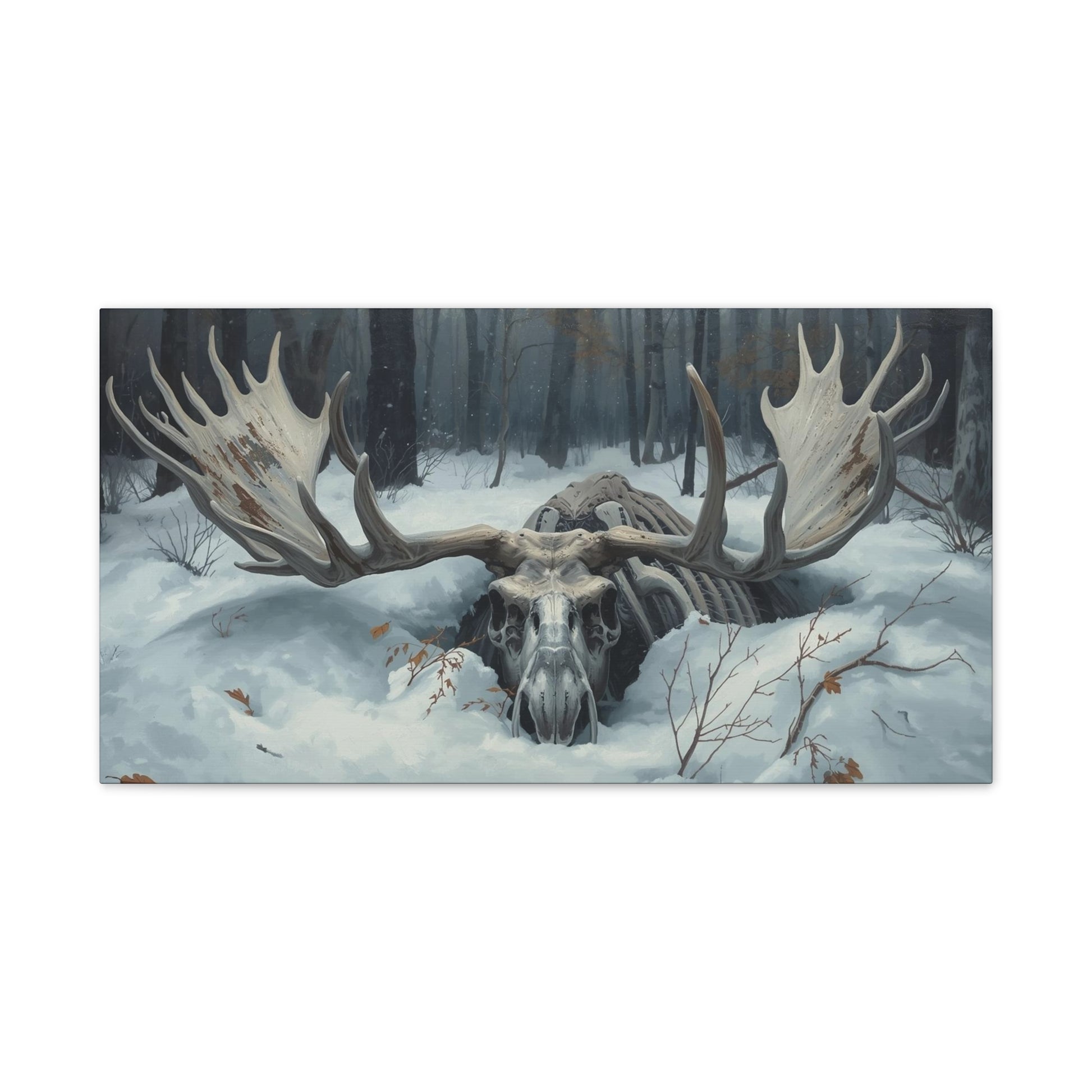 Create a cozy winter atmosphere in your home with this Moose Skull Winter Forest canvas. Perfect for nature lovers and those who enjoy rustic decor, this canvas adds a touch of wilderness to any room. Ideal for Christmas, winter, or cabin-themed decorations.